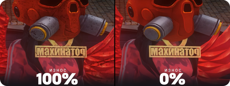 Износ появляется при смерти или повторном надевании, не влияет на характеристики, но добавляет атмосферу.