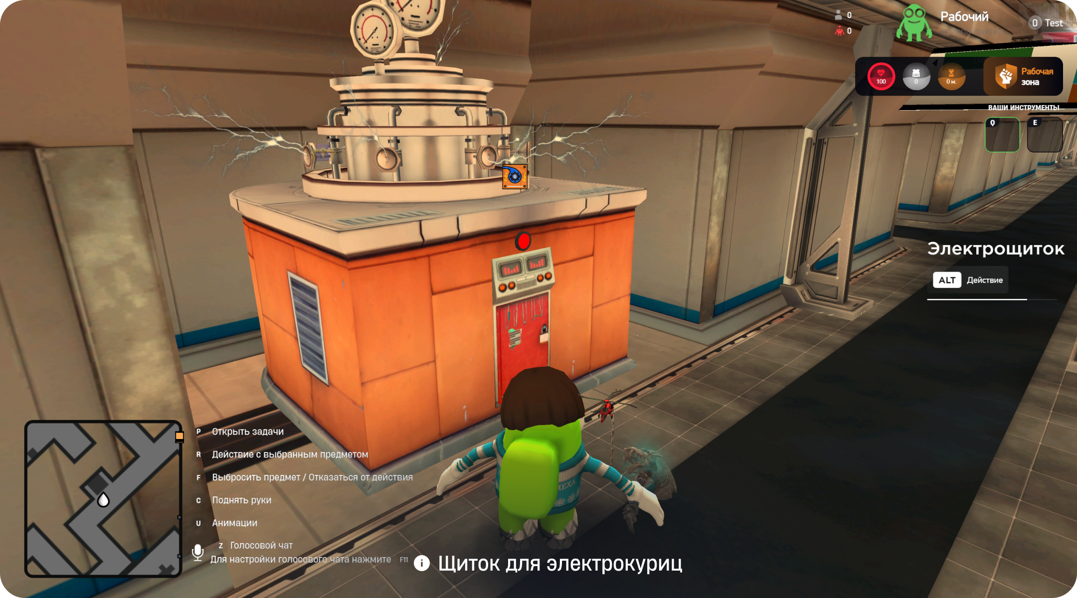 После зарядки курицы в предыдущем задании, возьмите колбу с электрокурицей и доставьте ее к ближайшему электрощиту. Открыть электрощит нужно используя отвертку, найти которую можно на складе.