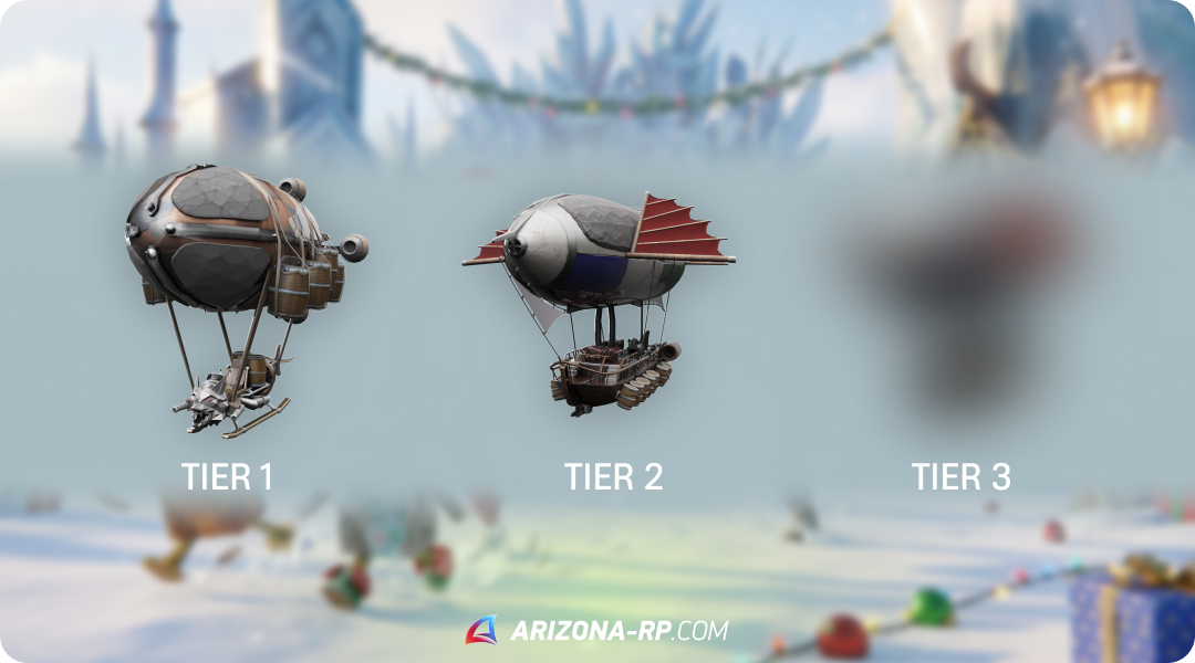 Всего существует 3 Tier'a дирижабля магната. Для улучшения вам потребуются "Запчасти от Дирижабля Магната", используя которые сидя в дерижабле вы можете попытать удачу и получить следующий уровень дирижабля, с увеличенной вместимостью и наградами.