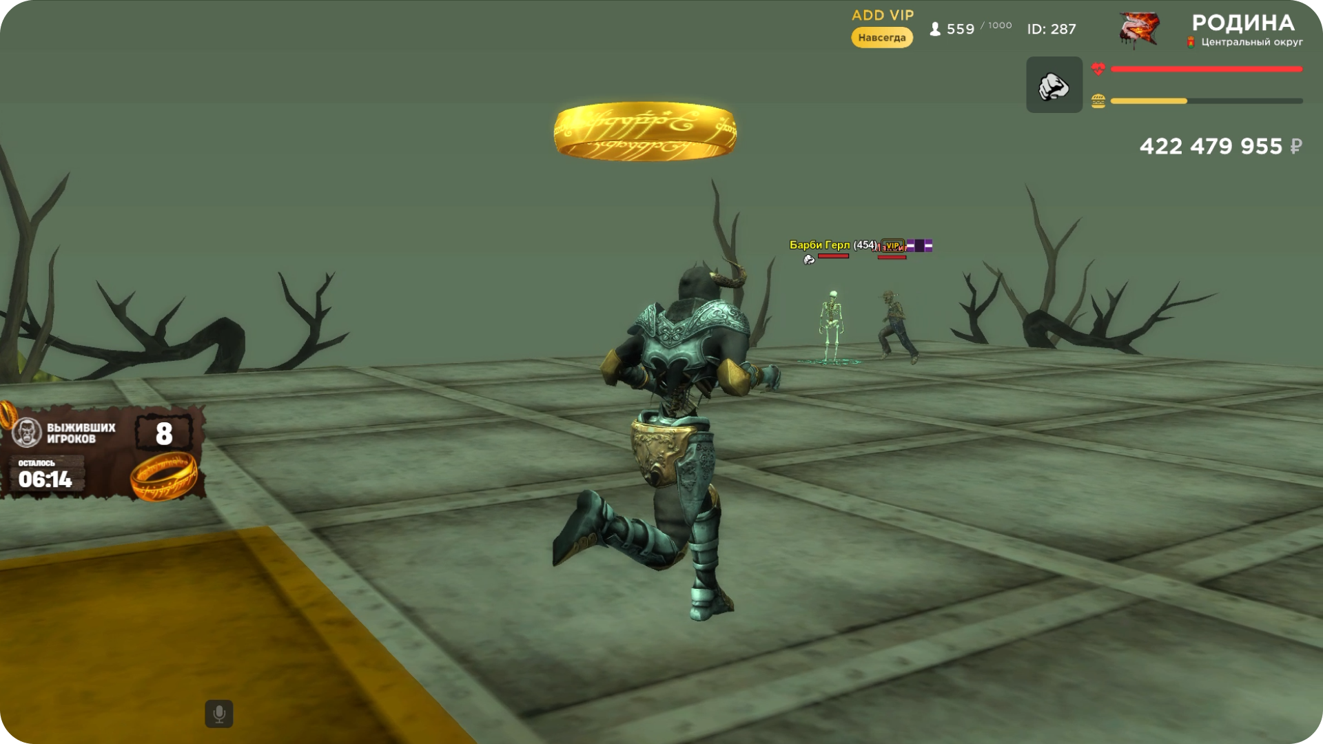 Однако не только другие участники будут мешать — на пути владельца кольца появятся зомби. Их атаки могут выбить кольцо из рук, после чего оно появится в случайной точке арены.