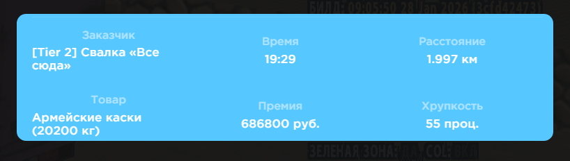 Теперь шанс получения ларца дальнобойщика за рейс ~ 45%, чем больше расстояние рейса, тем больше шанс. Для кастомных фур к шансу добалвяется еще +15%.